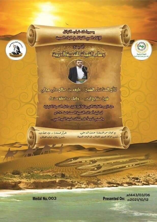 وكشفت المصادر أن تكريم مليشيا الحوثي الإرهابية القيادي في تنظيم القاعدة عارف مجلي، بوسام القبيلة العربية، نتيجة لدوره في حشد الكثير من المقاتلين من التنظيم والزج بهم في صفوف مليشيا الحوثي للسيطرة على عدد من مديريات محافظة مأرب، ولتنفيذ العديد من العمليات الإرهابية في المناطق المحررة.