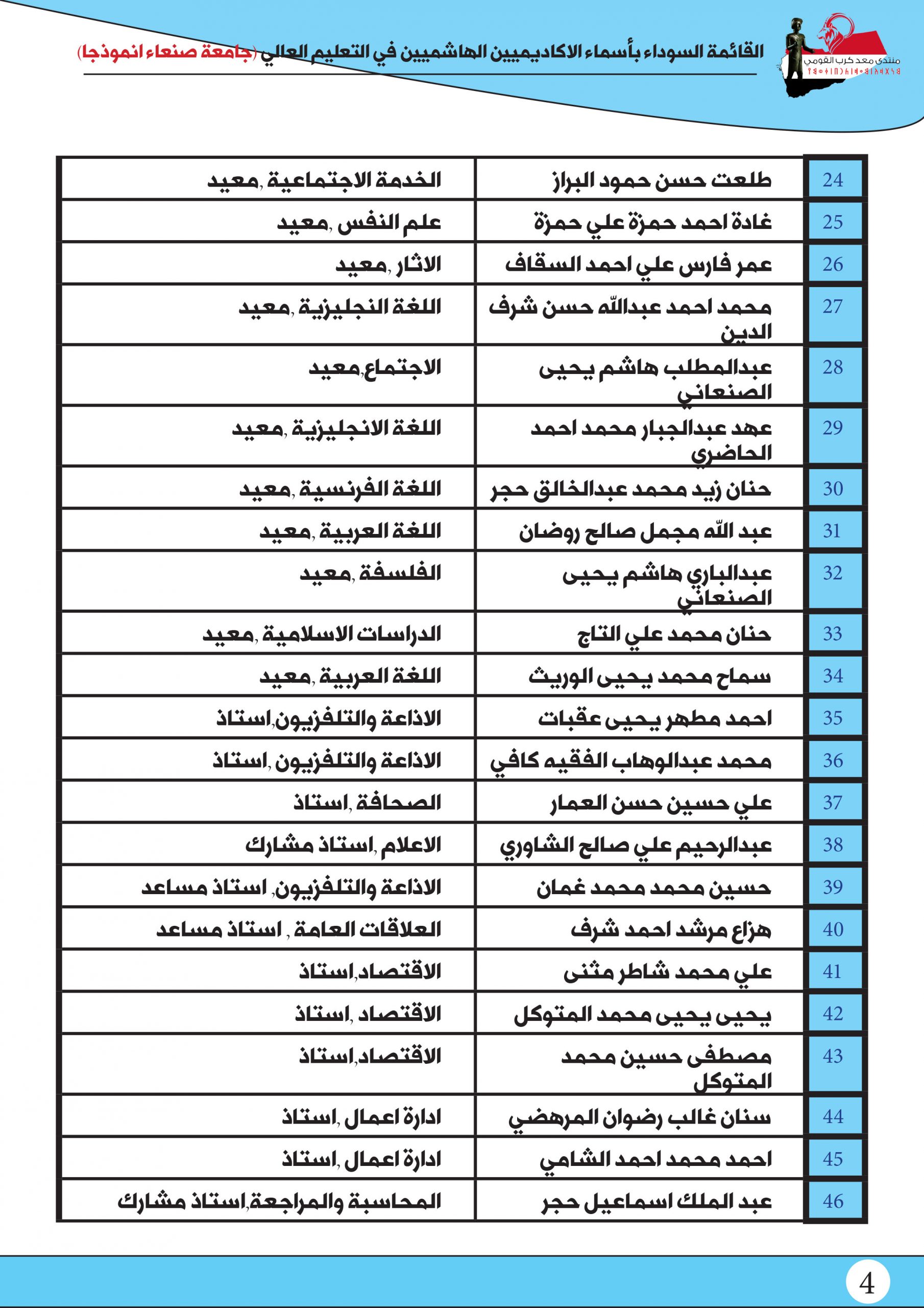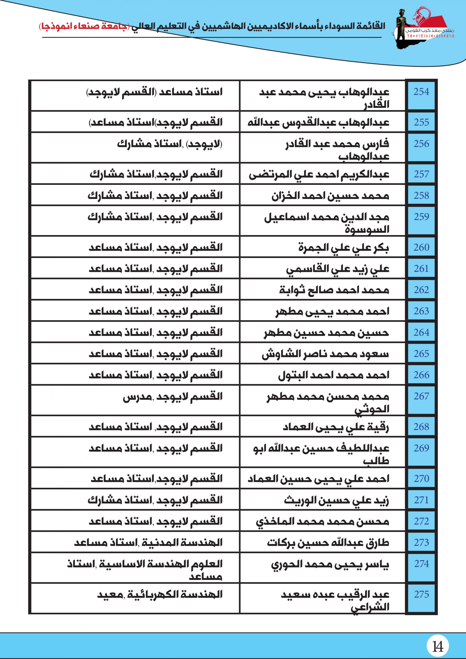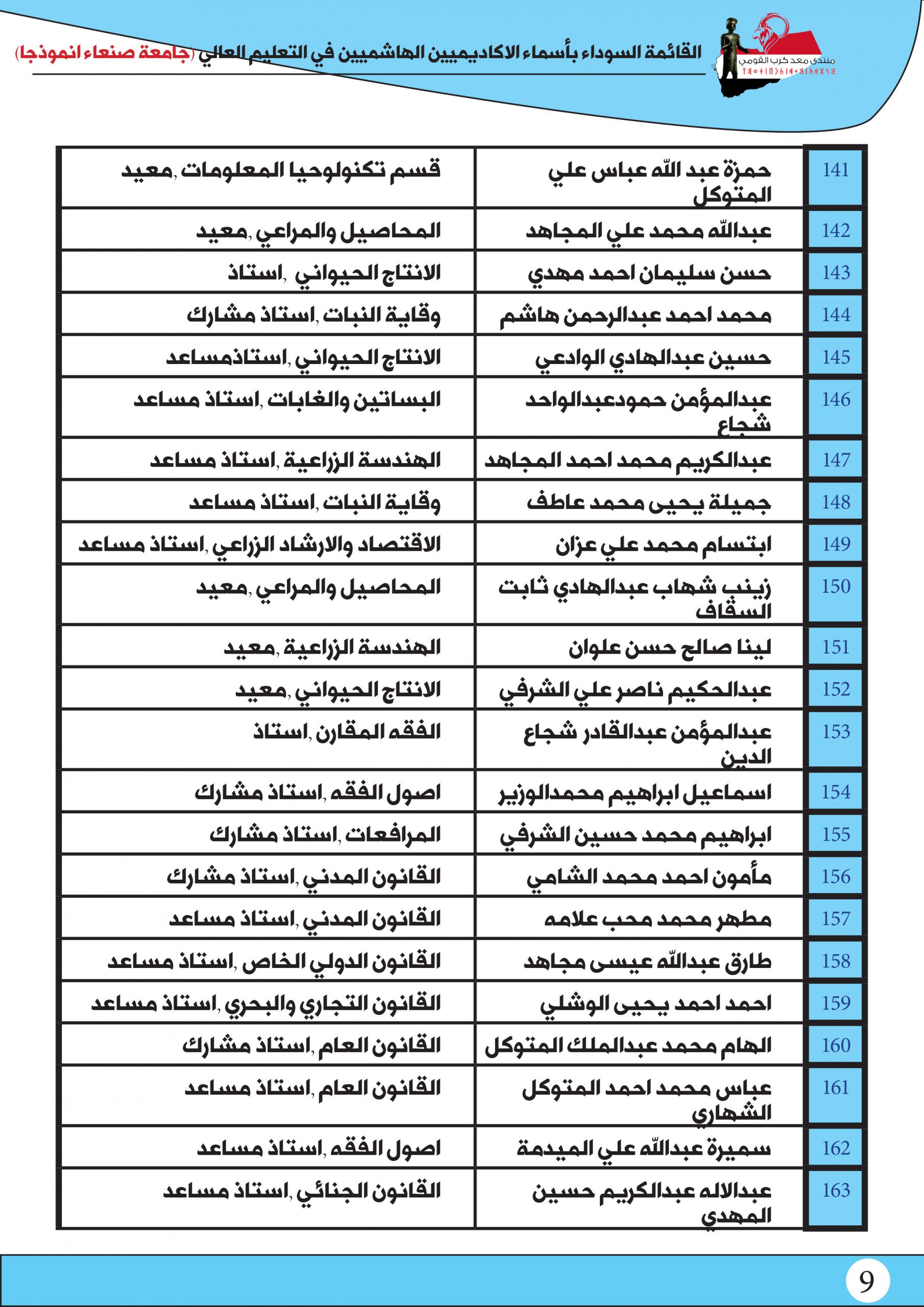 كشف منتدى معد كرب القومي عن قائمة سوداء مكونة من 291 اسمًا لقيادات وكوادر وشخصيات هاشمية دفع بهم الحوثي للسيطرة على التعليم العالي في الجامعات اليمنية وتحديدًا جامعة صنعاء..