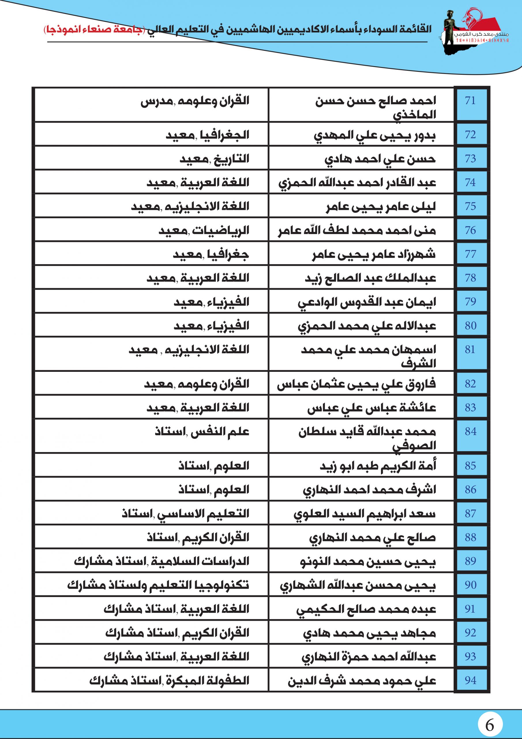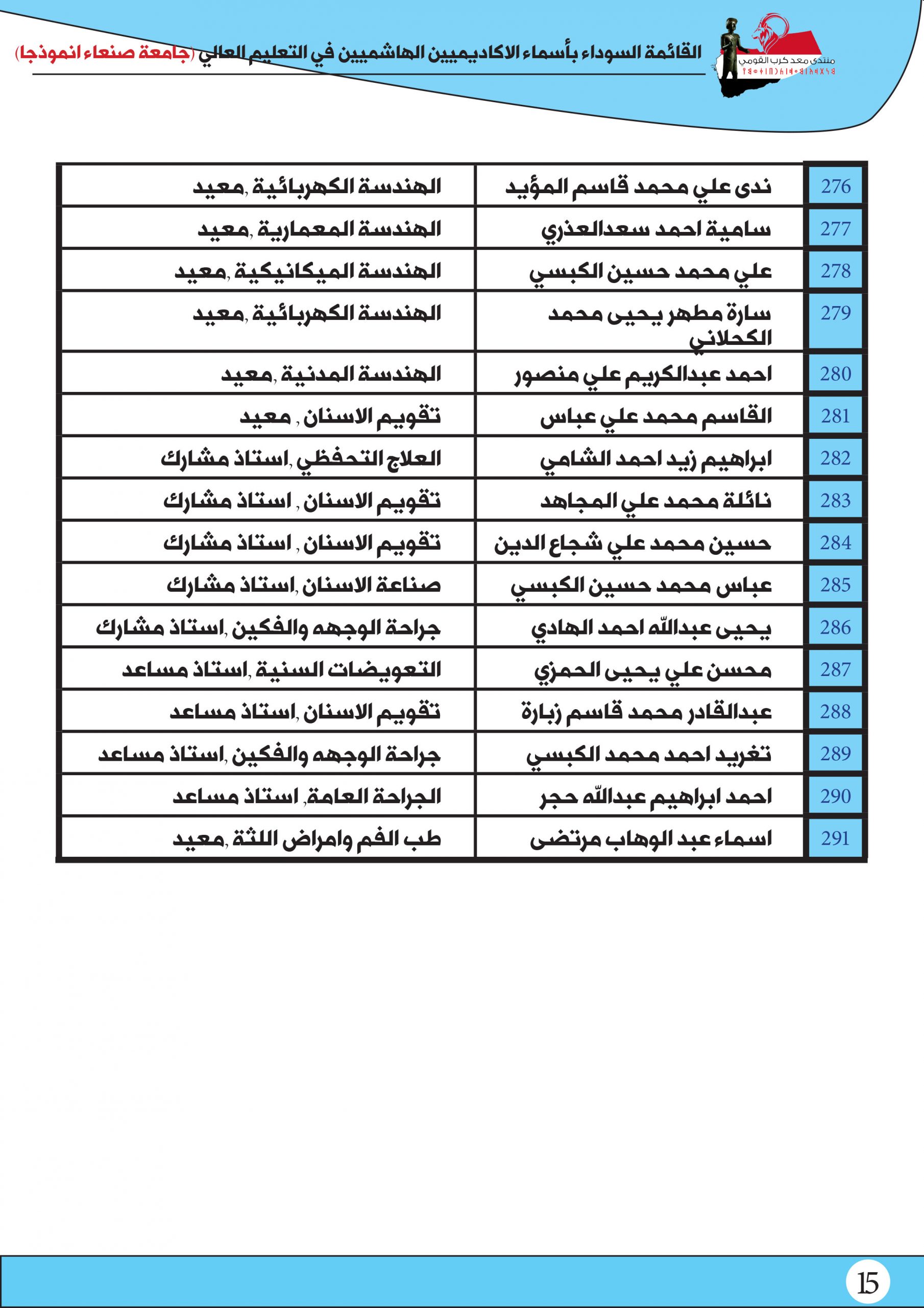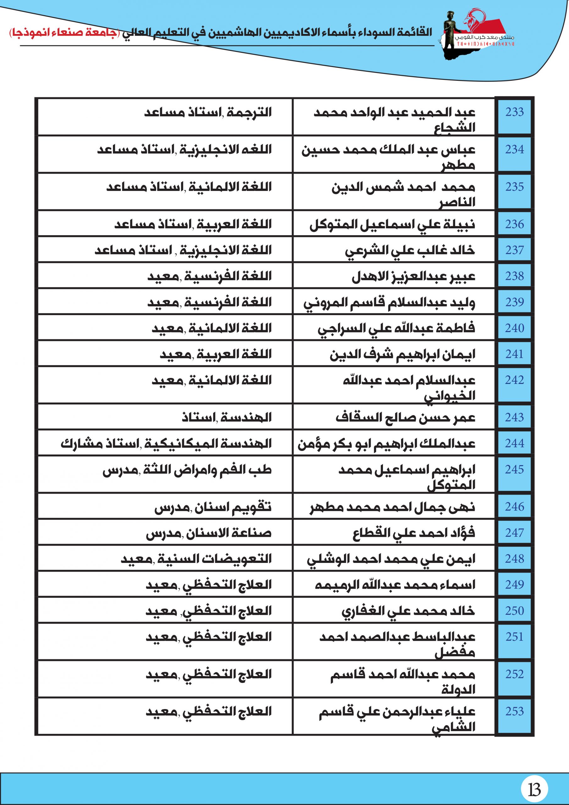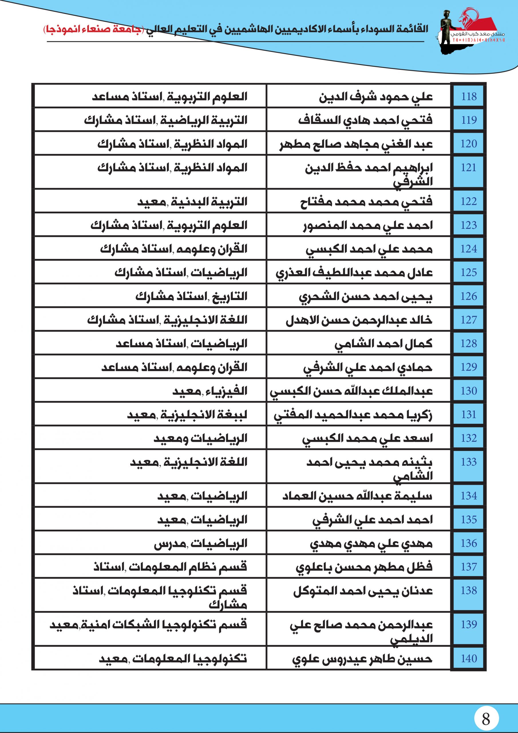 كشف منتدى معد كرب القومي عن قائمة سوداء مكونة من 291 اسمًا لقيادات وكوادر وشخصيات هاشمية دفع بهم الحوثي للسيطرة على التعليم العالي في الجامعات اليمنية وتحديدًا جامعة صنعاء..