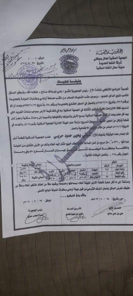 وثائق تكشف عمليات تزوير واستيلاء نافذين على أراضي جمعية عمّال شركة النفط بالحديدة