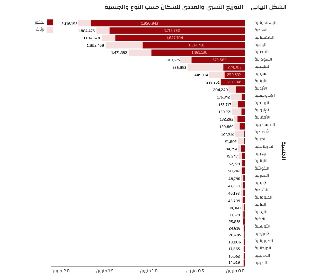 وأكدت الإحصائية أن عدد اليمنيين المغتربين في السعودية بلغ حتى نهاية 2022م، (1,803,469) شخصا، بينهم “1,334,481” ذكرا، و “468,988”، إناث، حسب ما نشرته جريدة العرب الاقتصادية.