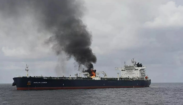 انفجار على متن ناقلة نفط كاميرونية بهحوم حوثي جنوبي اليمن